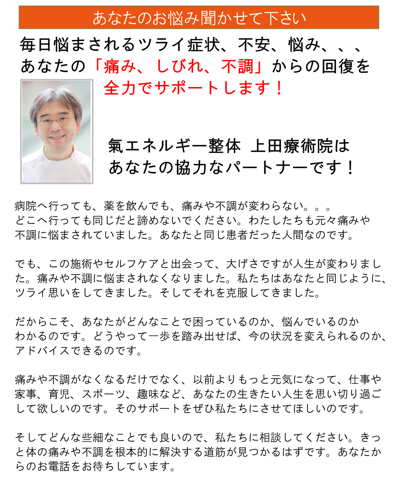 このように氣のエネルギーを用いることによって、各症状を楽にしていきます。